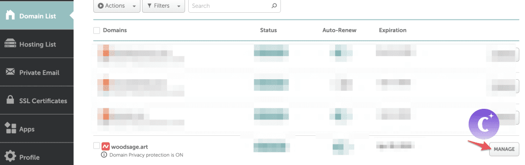 ตัวอย่างนี้ ปาล์มได้ ซื้อ Domain Name ผ่าน เว็บไซต์ Namecheap.com ชื่อว่า woosage.art เป็นเว็บที่ปาล์มจะใช้จริงสำหรับ Art Space ของปาล์มค่ะ