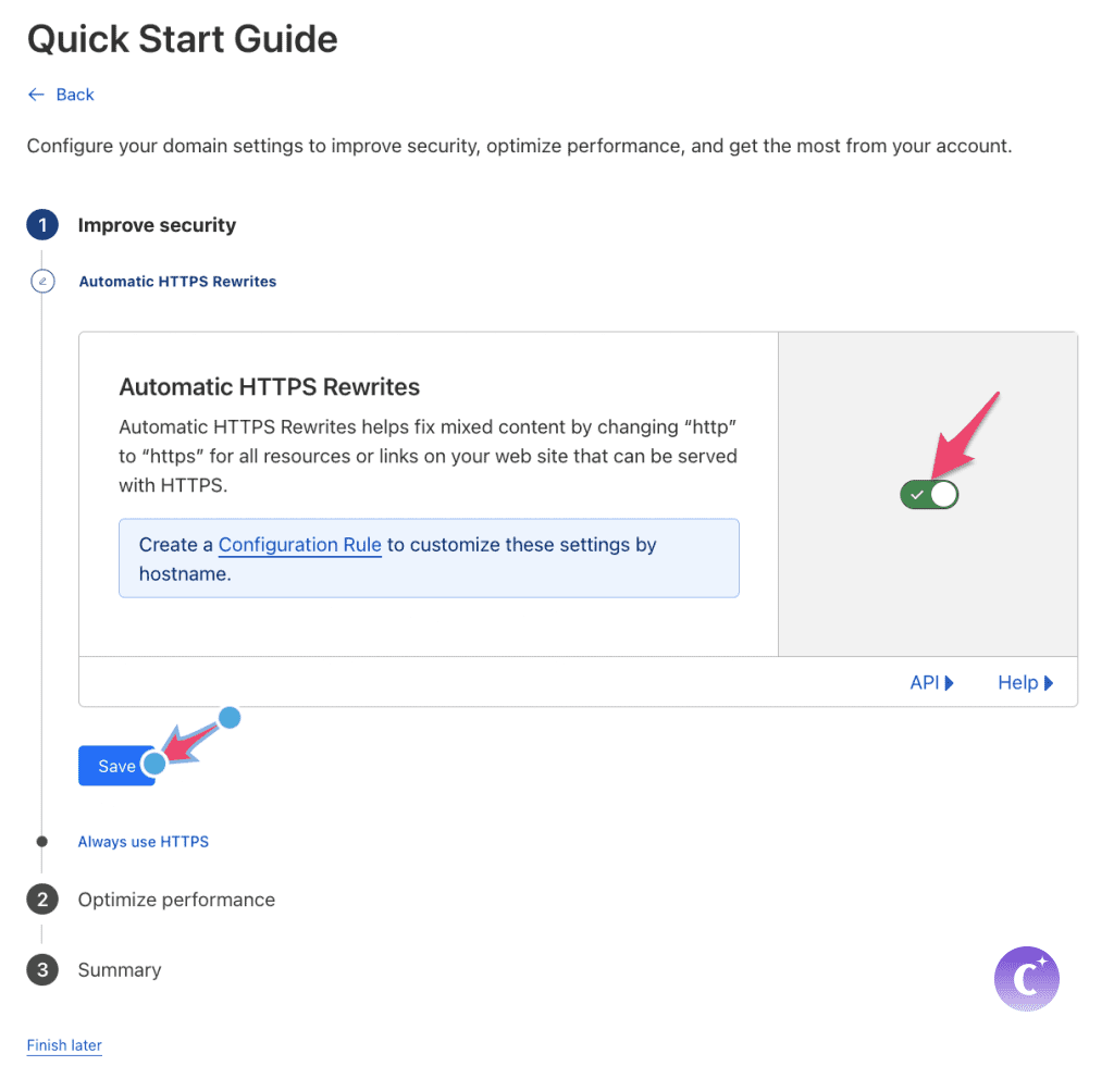 หลังจากนั้น เราก็ ก็ทำตามขั้นตอนถัดไปที่ Cloudflare แนะนำ ต่อตามรูป โดยกดปุ่มตามที่ปาล์มวงไว้ ตามลำดับค่ะ
